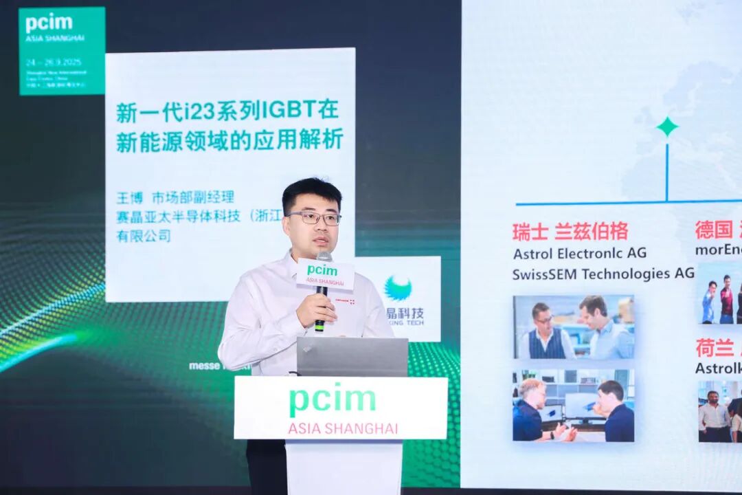 展會同期,賽晶半導體市場部副經理王博發表《新一代i23系列IGBT在新能源領域的應用解析》的演講,為行業客戶解讀功率半導體技術趨勢與應用案例。