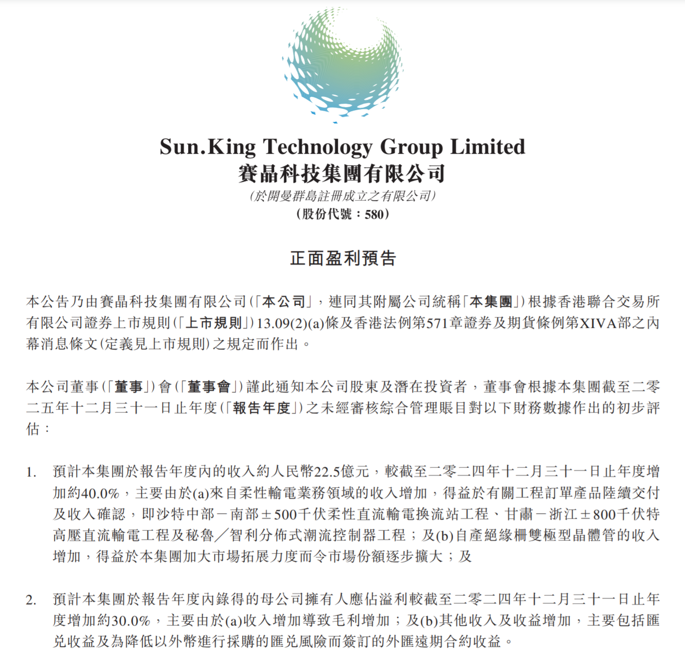 預計本集團于報告年度內的收入約人民幣22.5億元,較截至二零二四年十二月三十一日止年度增加約40.0%,主要由于(a)來自柔性輸電業務領域的收入增加,得益于有關工程訂單產品陸續交付及收入確認,即沙特中部-南部±500千伏柔性直流輸電換流站工程、甘肅-浙江±800千伏特高壓直流輸電工程及秘魯╱智利分佈式潮流控制器工程;及(b)自產絕緣柵雙極型晶體管的收入增加,得益于本集團加大市場拓展力度而令市場份額逐步擴大;